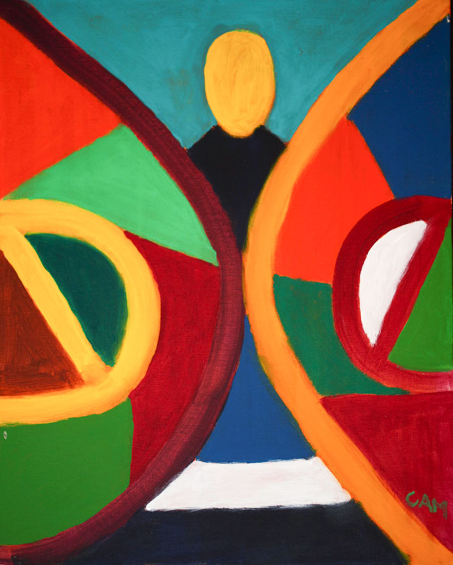 I create vivid colorful oil and acrylic paintings, which integrate images from meditation, intuition, imagination, and nature. The bones and feathers that come off the the canvas were collected in nature walks and treks in Sonoma and Marin Counties, and in France, Corsica, and the San Juan Islands.